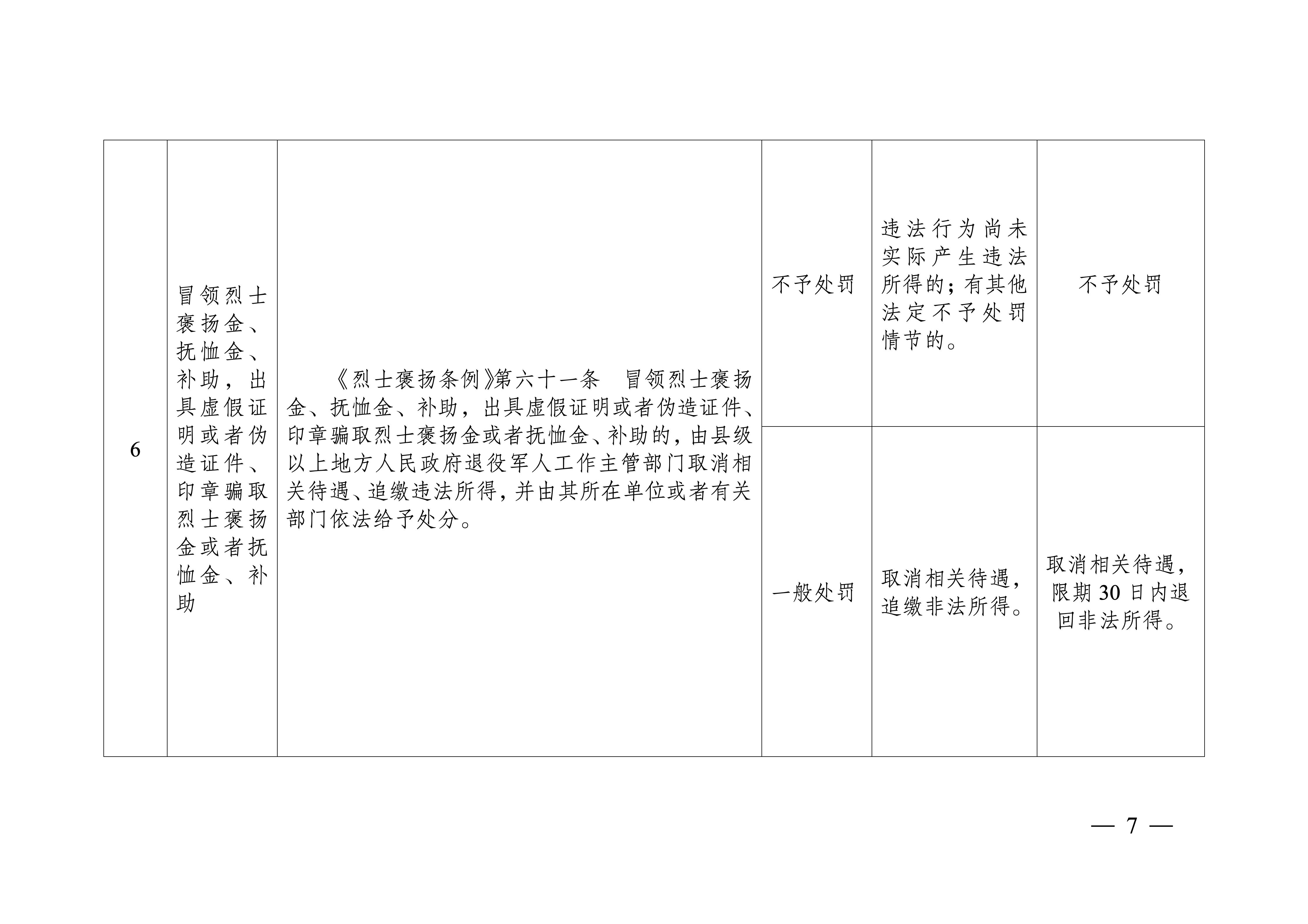(二)公平合理原则。行使行政处罚自由裁量权符合社会公序良俗以及退役军人和其他优抚对象合理期待,对类别、性质、情节相同或者相近事项处理结果基本一致。