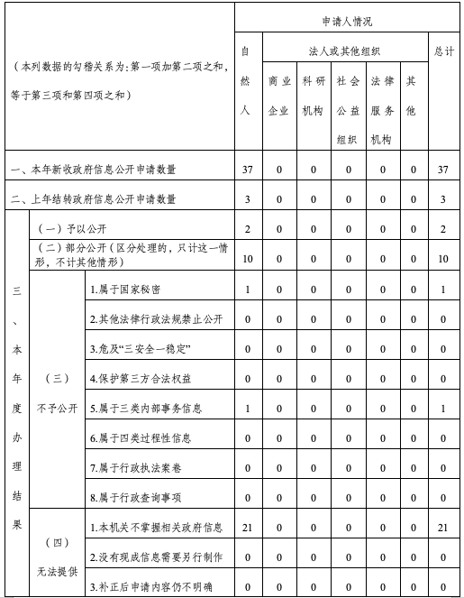 三、收到和处理政府信息公开申请情况