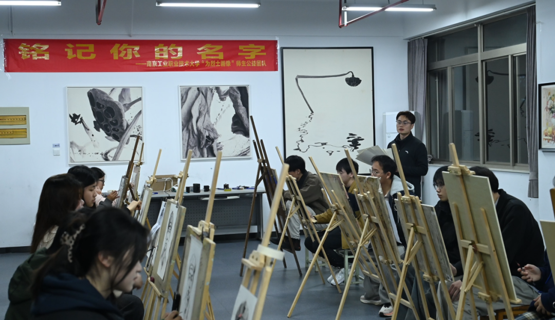 大学生们在为烈士画像。张梓凌 摄