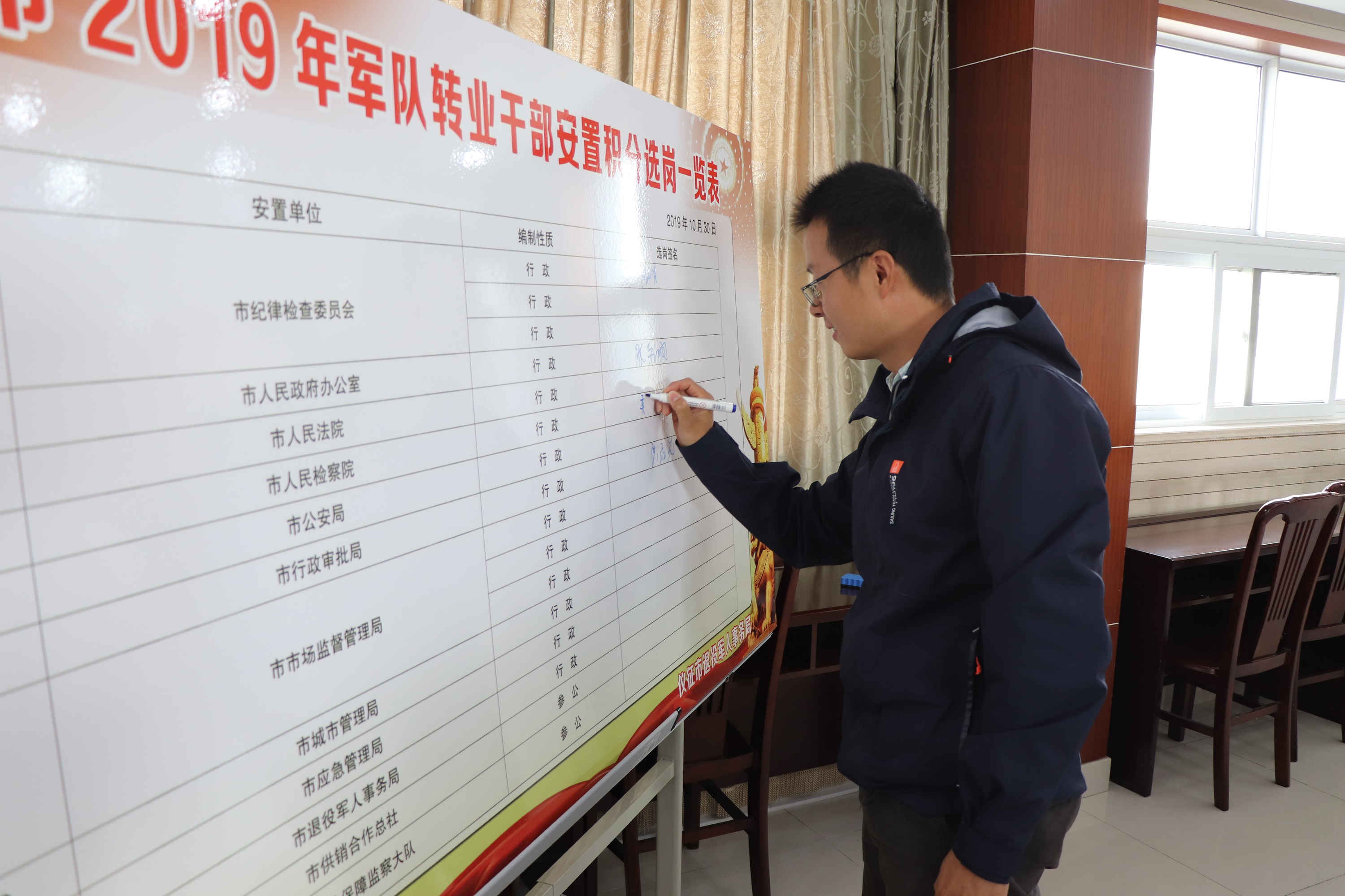 10月30日上午,仪征市接收计划安置的13名营职及以下军转干部通过积分选岗,选择了自己心仪的岗位。