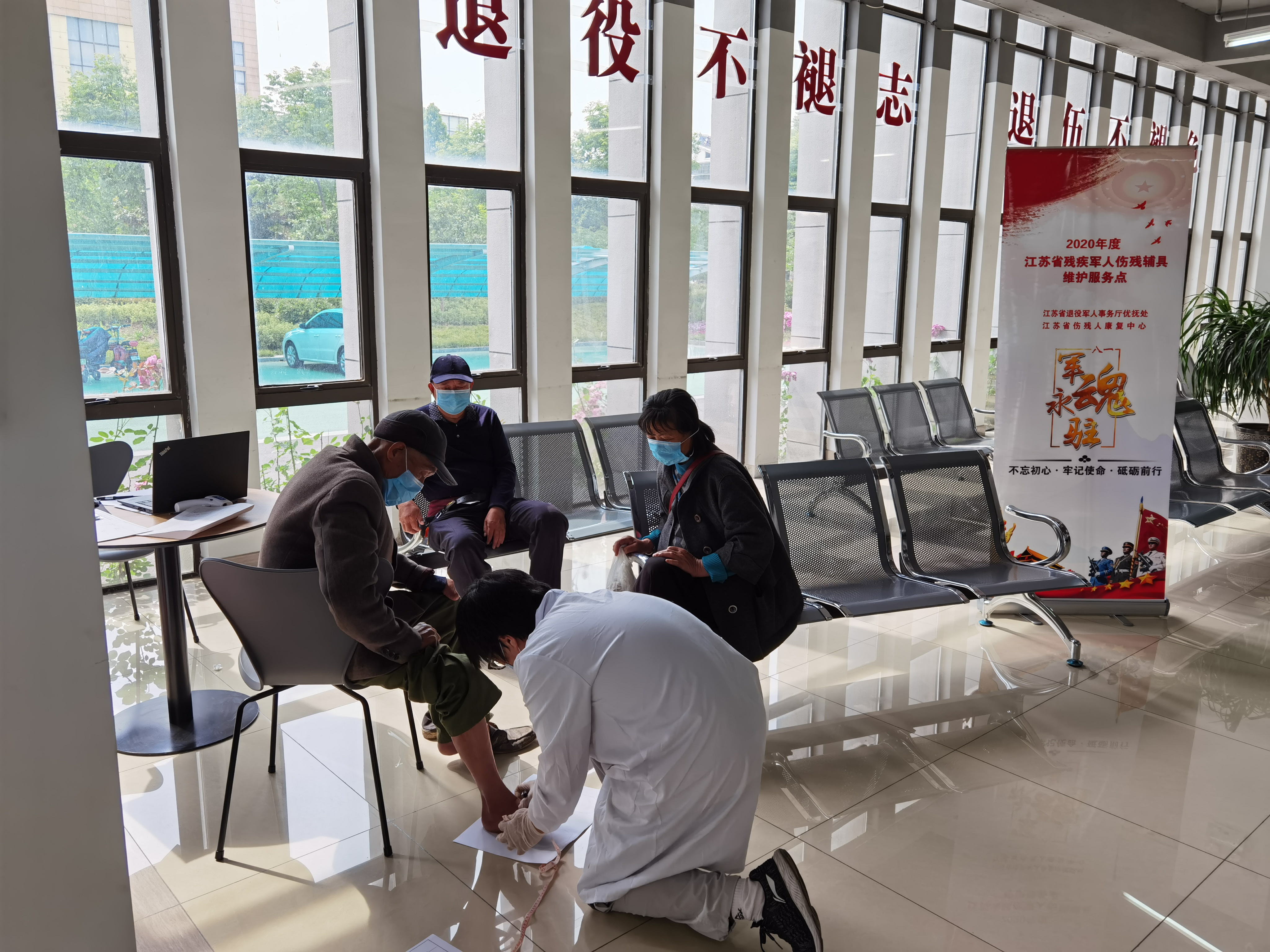 新冠肺炎疫情的发生对今年的伤残辅具维护服务工作提出了不同于往年的要求。为使项目能够安全高效地顺利开展,有关业务处室在前期调研的基础上,指导省康复中心军残科制定了伤残辅具维护服务工作方案,明确了具体要求;伤残军人属地县(市、区)退役军人事务局做了大量前期准备工作,为残疾军人提供了合理的等候区域和宽敞的服务场地,按时通风并及时做好消毒工作;工作人员严格为每一位接受服务的残疾军人测量额温,提醒服务对象按照要求佩戴口罩。