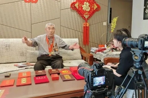 “还有一次,我去做接送任务,大概有十几米的封锁线。我一开跑就被敌人发现了,两挺机枪就扫射过来了。我就把头钻到炮打出来的坑里面,敌人以为我被打死了,过了大概2分钟,我就爬起来一个箭步跑到指挥所里,敌人后面再打枪,我已经躲进去了……”