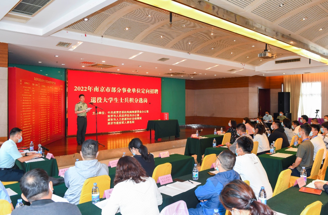 9月27日上午,南京市召开2022年部分事业单位定向招聘退役大学生士兵积分选岗会。经过前期笔试考试、档案考核、体检考察等环节层层筛选,70名退役大学生士兵脱颖而出,参加积分选岗。