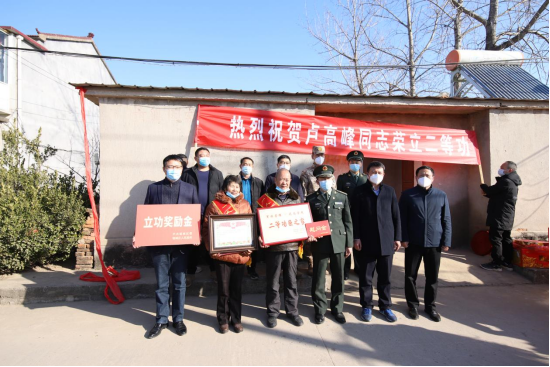 宿城区军地联合为立功受奖现役军人卢高峰家庭送上二等功喜报。在邻里乡亲的见证下,部队有关同志为卢高峰亲属披上绶带,现场宣读表彰政令,将“二等功臣之家”牌匾和奖励金、慰问金、新春慰问信和年画送到他们手中,并向功臣一家表达崇高敬意和新春祝福。卢高峰从事飞行工作17年来,积极参加军事训练,曾被评为优秀基层军官、“四有”优秀军官,荣立三等功5次。2022年因成绩突出,被授予二等功。