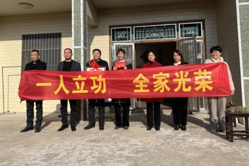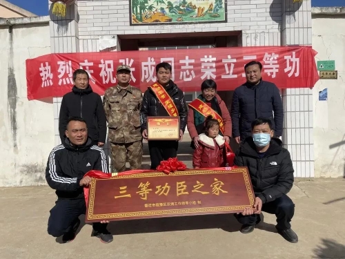 阜宁县军地一行前往荣立三等功的阜宁籍战士邹其功家中送喜报。在邹其功家里,部队有关同志宣读了功臣的立功通令,送喜报小分队为功臣父母佩戴“一人立功、全家光荣”绶带,并送上立功喜报、“三等功臣之家”牌匾和立功荣誉金,同时向军属表示热烈祝贺。邹其功在2022年度上级组织的考核验收中取得优异成绩,荣立三等功一次——这也是他入伍以来第二次荣立三等功。