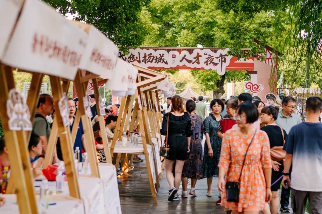 7月23日,由扬州市退役军人事务局、市人力资源和社会保障局联合举办的“戎创扬城·人才夜市”扬州市人才招聘会暨军创企业产品展销会在该街区盛大开幕,用人单位“摆摊亮岗”,退役军人“纳凉择业”,军创企业“展销纳才”,市民游客“游玩采购”,以夜市“烟火气”为人才服务“聚人气”,为军创企业发展“加油赋能”,实现军创企业发展与退役军人就业“双向奔赴”。