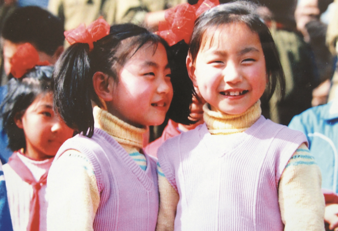 其中一张彩色照片,拍的是一对10岁上下的双胞胎拥军小姐妹。